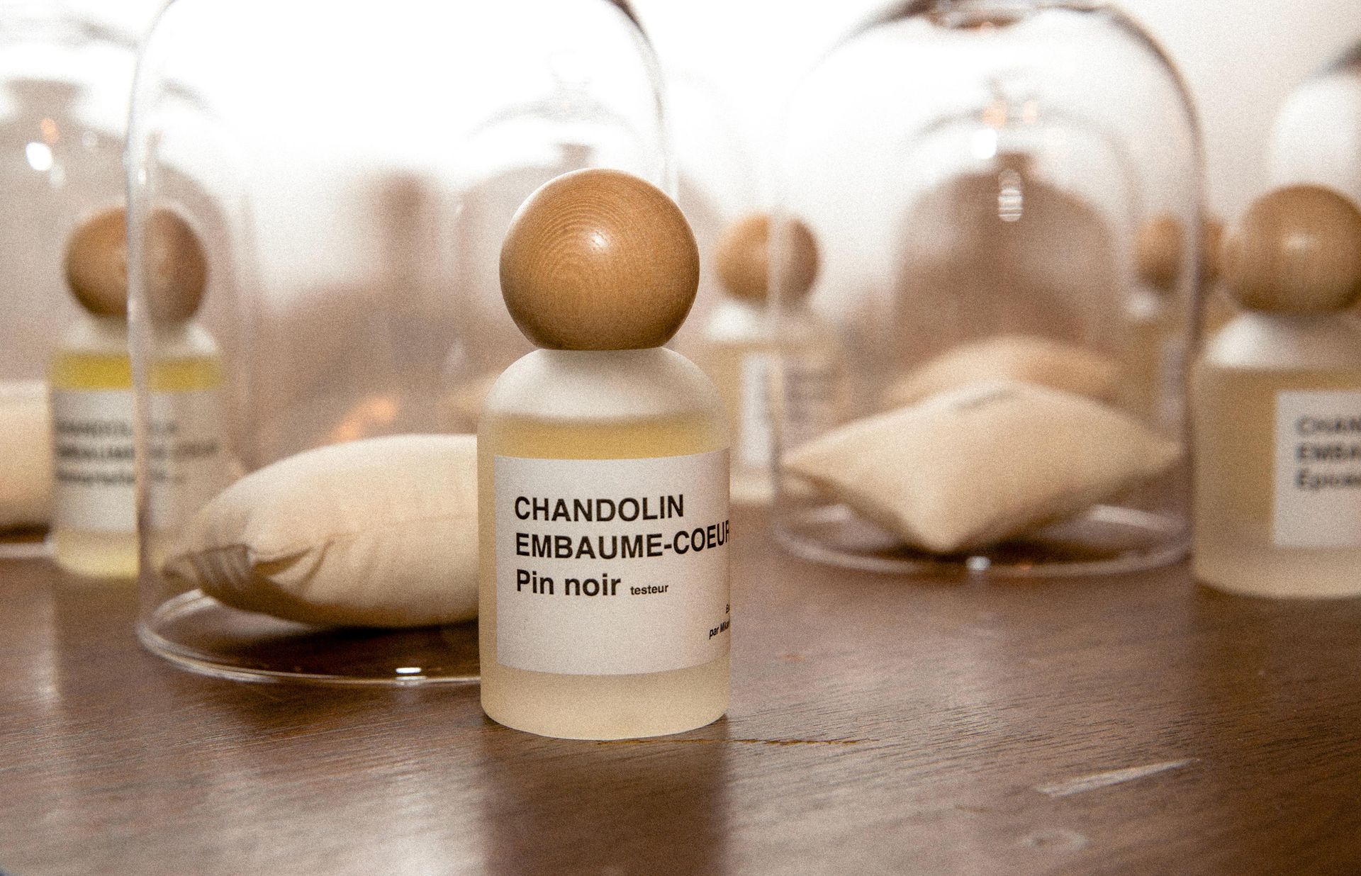Six conifères de Chandolin en forment le cœur, entourés de notes de bergamote, de cuir, de cacao, d’ambre et de bois : l’arolle à l’élégance discrète, le sapin blanc aux accents agrumes inattendus, l’épicéa familier, le pin noir sombre et viril, le pin sylvestre aux accents marins en altitude, et le mélèze - roi fragile qui se dépouille en hiver avant de renaître au printemps.