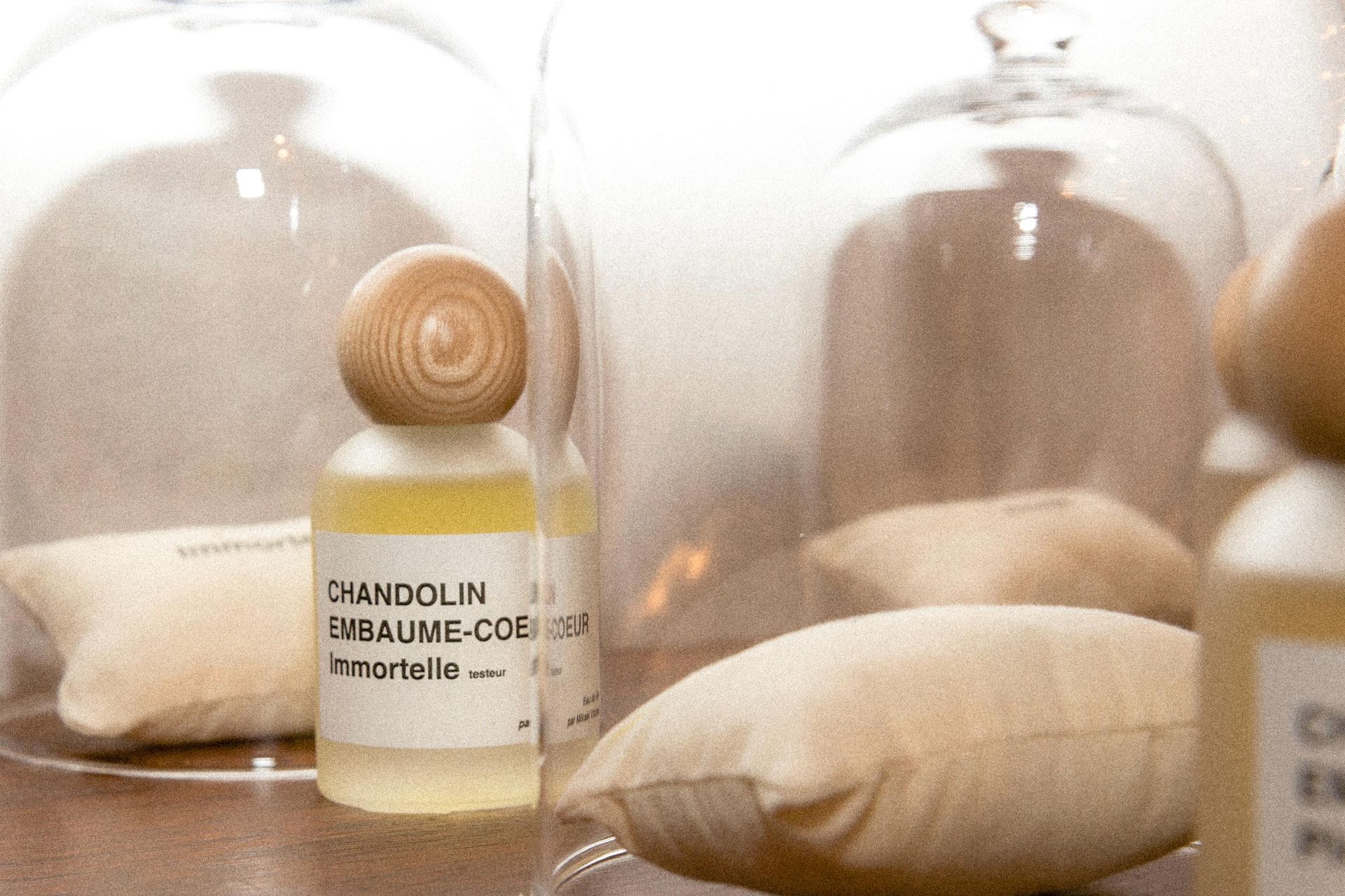 À ces arbres répond l’Immortelle, souveraine aux mille facettes, mielleuse, ani- male et florale, accompagnée d’iris, d’osmanthus et de cardamome.